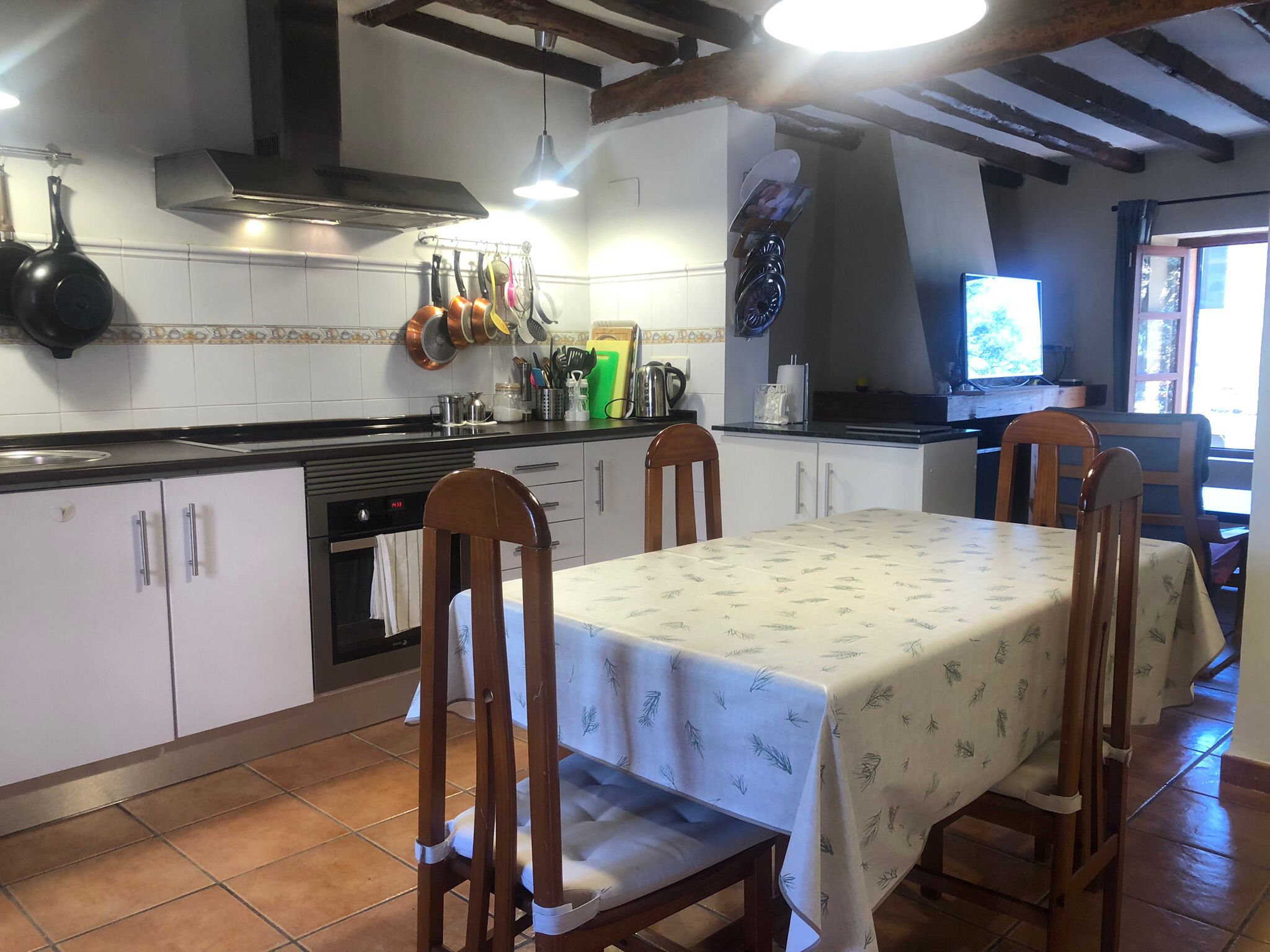 Según entras al distribuidor, podrás entrar directamente al salón, o a la cocina por la puerta de la derecha, una cocina completamente equipada con todos los electrodomésticos con una vitrocerámica profesional para los grandes chefs, está conectada directamente con un gran salón con chimenea. También se accede desde aquí a un patio trasero con vistas a la sierra y parte del pueblo. Dispone de ocho habitaciones muy amplias y 4 baño completos todos con plato de ducha y con luz natural. Toda la vivienda tiene vigas de madera vistas, lo que da un toque rustico pero elegante. Acabados de gran calidad